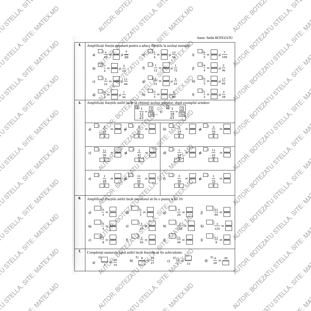 Această fișă de lucru este concepută pentru fixarea și consolidarea noțiunii de amplificare a fracțiilor ordinare, fiind adaptată nivelului elevilor de clasa a V-a.