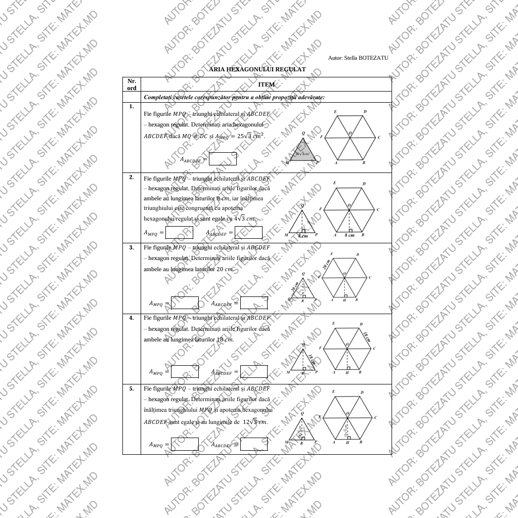 fișă de exersare la etapa de consolidare a cunoștințelor noi.
