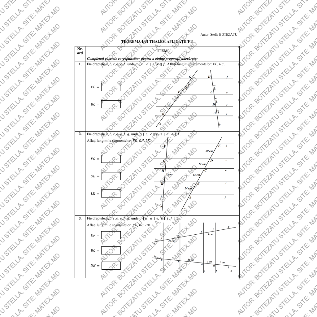 ✔ consolidarea capitolului „Teorema lui Thales”;